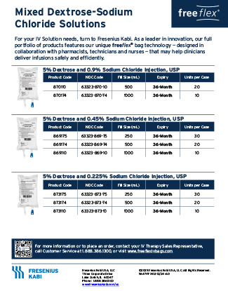 For your IV Solution needs, turn to Fresenius Kabi. As a leader in innovation, our full portfolio of products features our unique freeflex® bag technology – designed in collaboration with pharmacists, technicians and nurses – that may help clinicians deliver infusions safely and efficiently.